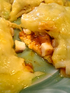 ピザ生地の代わりに酢飯が使ってあり、海鮮の具の上にチーズを乗せて焼いてあります