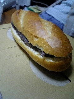 こいつは餡の奥にラムレーズンクリームが挟んである、あんラムレーズンフランスパンなのです